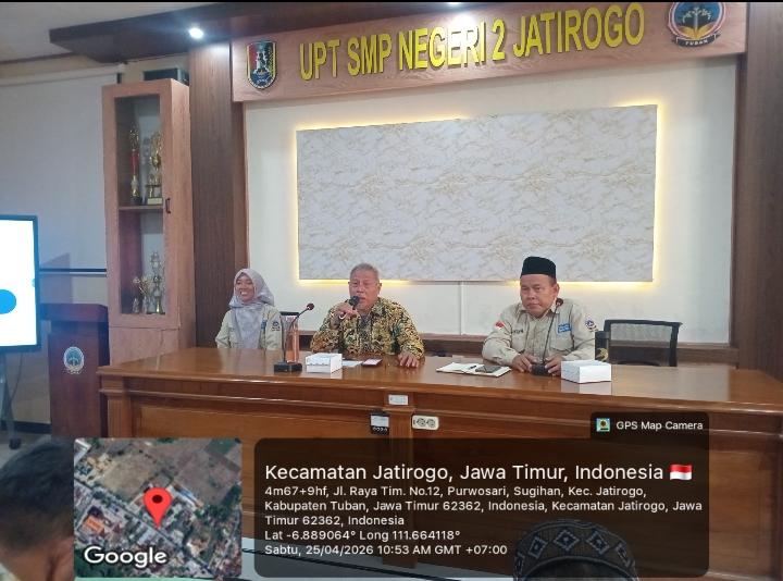 Kabar Seroja (25-04-2026) - Dalam upaya menciptakan lingkungan pendidikan yang kondusif, UPT SMP Negeri 2 Jatirogo menggelar kegiatan Sosialisasi Budaya Sekolah Aman dan Nyaman (BSAN). Kegiatan ini dihadiri oleh perwakilan bapak dan ibu orang tua/wali murid kelas VII dan VIII, pengurus inti OSIS, komite sekolah, serta seluruh bapak/ibu guru dan Tata Administrasi UPT SMP Negeri 2 Jatirogo.