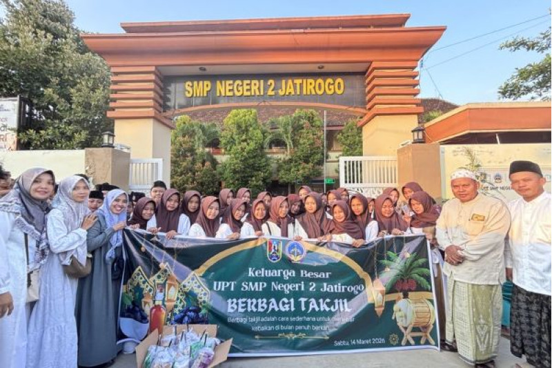 Jatirogo, 14 Maret 2026 – Semangat berbagi dan kebersamaan terasa hangat di depan UPT SMP Negeri 2 Jatirogo pada Sabtu sore (14/3/2026). Menjelang waktu berbuka puasa, keluarga besar sekolah menggelar kegiatan berbagi takjil kepada masyarakat dan para pengguna jalan yang melintas di depan sekolah.